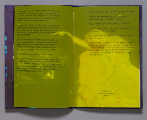 The Brontë Parsonage Museum has worked with major contemporary artists in recent years, commissioning new artistic responses to the Brontës, the Parsonage and its collection. Štrba’s series of images, in response to the Brontë Parsonage Museum and its collection, are reproduced in fluorescent inks and float across the heavy cotton pages of the book.